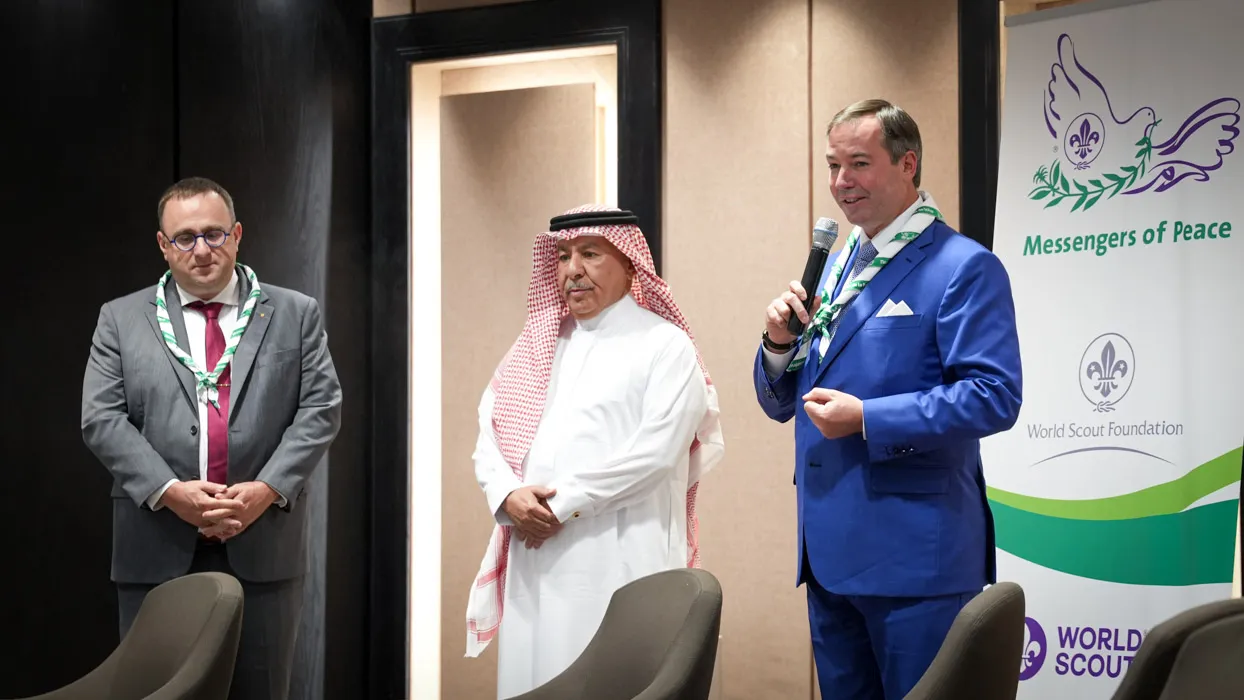 Representatives of the World Scout Foundation and World Scouting are in Riyadh, in the Kingdom of Saudi Arabia, 14–15 September, celebrating a new chapter in the transformative Messengers of Peace initiative. Building on the renewed agreement signed in April 2025 and more than 15 years of collaboration, over several high-level events and meetings, we reaffirmed our shared commitment to empowering young people in Saudi Arabia and worldwide to respond to today’s global realities and issues impacting their communities.