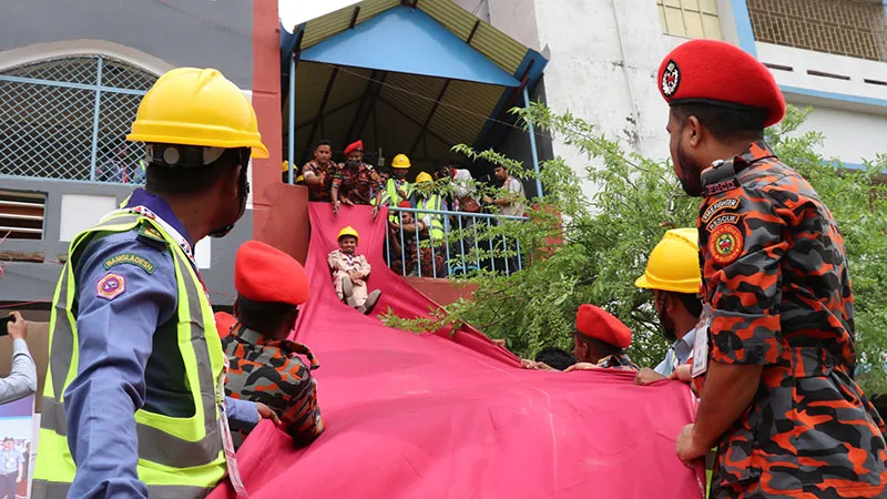 7. Earthquake - Bluster! A mock drill was an impactful way to learn how to prepare communities to respond quickly after an earthquake. Evacuation skills, emergency preparedness, first aid and earthquake rescue skills were gained.