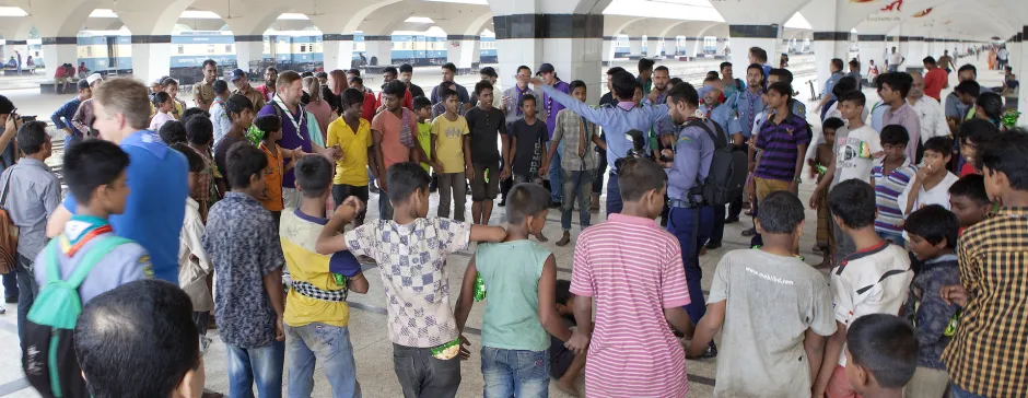 The Scouts go out up to four times a week to meet with street children at locations such as the central Dhaka railway station, Kamalapur, which the Honours Programme Members visited. They play games with the children, provide them with food and work to gain their trust, and they also try find out where the children are from and if there is any family left to which they could return. If so, then they use the Scout network to locate the family and to assess if a return is possible. If not, they try to find them a place in a shelter. And when that shelter has a Scout Group attached to it, they encourage the children to join the Scouts while they are in the shelter so they can learn skills that might lead to employment.