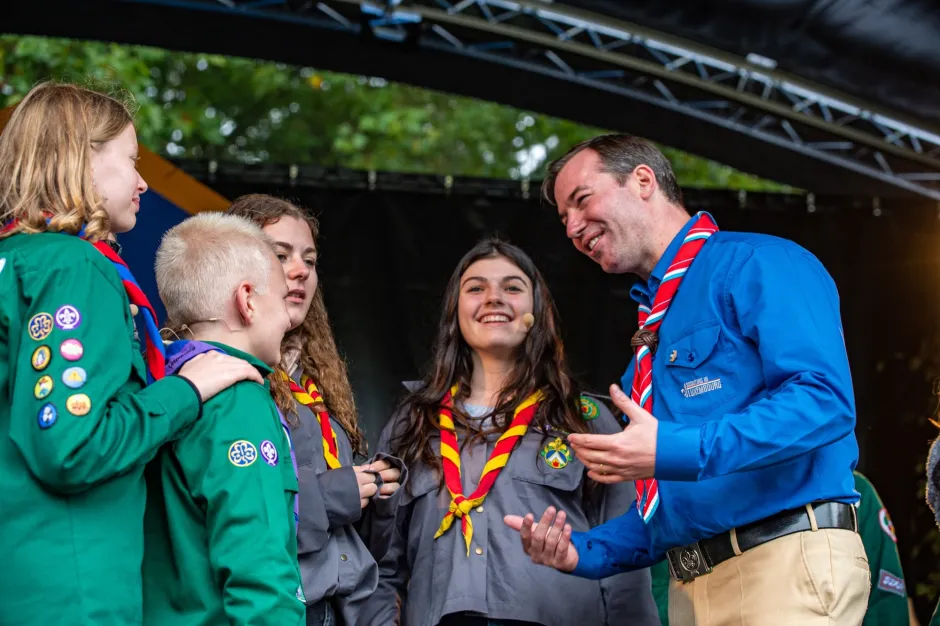 HRH Hereditary Grand Duke Guillaume took up the role and made his Scout Promise alongside Scouts and Guides from the two Associations in the Grand Duchy which make up Scouting in Luxembourg: the Fédération Nationale des Eclaireurs et Eclaireuses du Luxembourg (FNEL) and the Lëtzebuerger Guiden a Scouten (LGS). Together, through around 85 local groups, they deliver Scouting and Guiding to more than 7500 young people throughout the country.