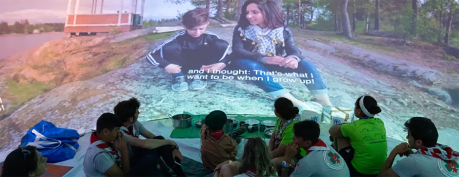 Day after day, Scouts drawn from 153 countries sat on the floor of a domed cinema surrounded by the simple belongings of a refugee family, as they were transported from West Virginia to Lebanon and Finland.