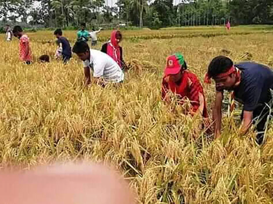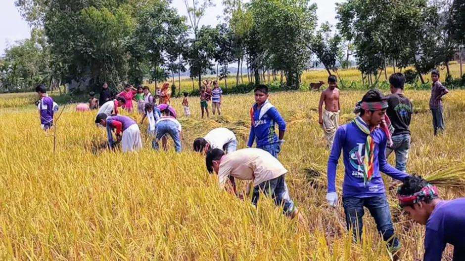 A group of Rover Scouts from Bangladesh Scouts’ Helds Open Scout Group in Phulpur, Mymensingh are helping poor farmers harvest crops from their paddy fields at no cost. The activity is part of the group’s social activities.