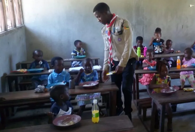 Working in cooperation with the National Institute of Management of Calamity and other humanitarian organisations such as the Red Cross, Medicine Sans Frontiers, UNICEF and WFP, Scouts of Mozambique have been active, cleaning rubble from schools and streets, searching for missing persons, supporting orphans, translating for humanitarian agencies, distributing food and water and assisting the Municipal Council in registration of affected persons.